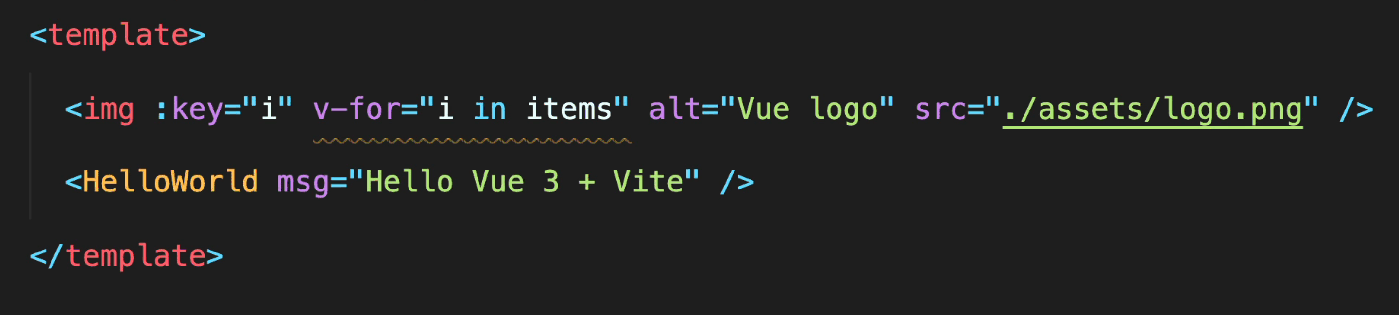 <img :key="i" v-for="i in items" alt="Vue logo" src="./assets/logo.png" />