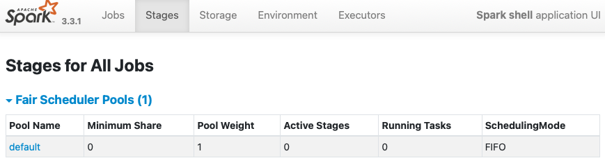 $ bin/spark-shell -c spark.scheduler.mode=FAIR
