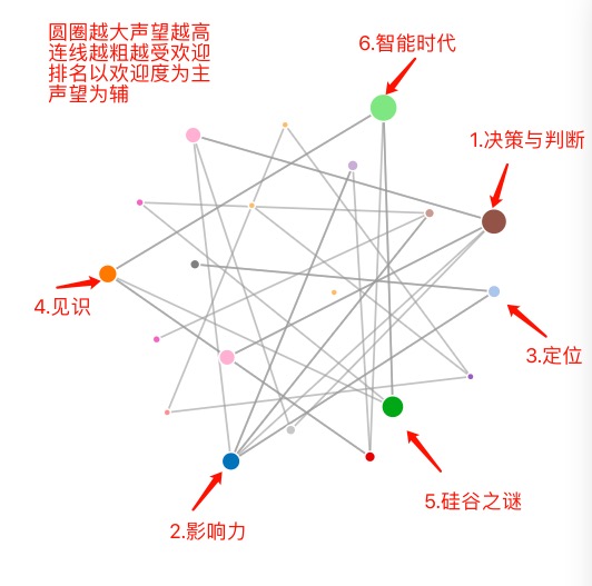 豆瓣商业图书板块中的图书经过我的小型pagerank算法排序后根据受欢迎度和声望两维度模拟了一个Google排名,前6名图书见图示