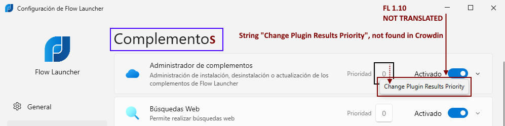 In "Flow Launcher Settings"/"Plugins" Description on priority mouseover, not translated. String "Change Plugin Results Priority", not found in Crowdin