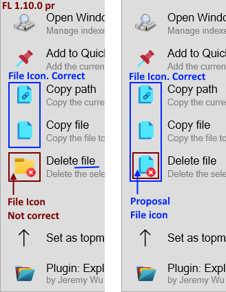 In the action sheet with files, the "Delete File" icon is not correct. The folder icon should change to a file icon.