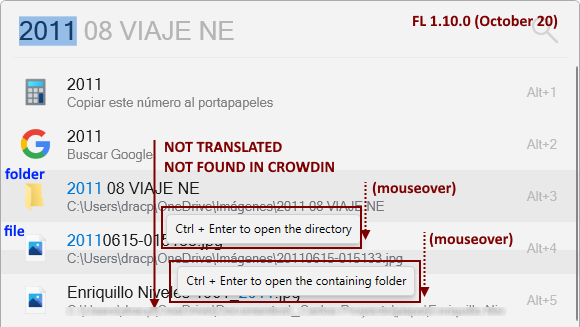 2. Mouseover popup on folder and file, is not translated. Not found in Crowdin