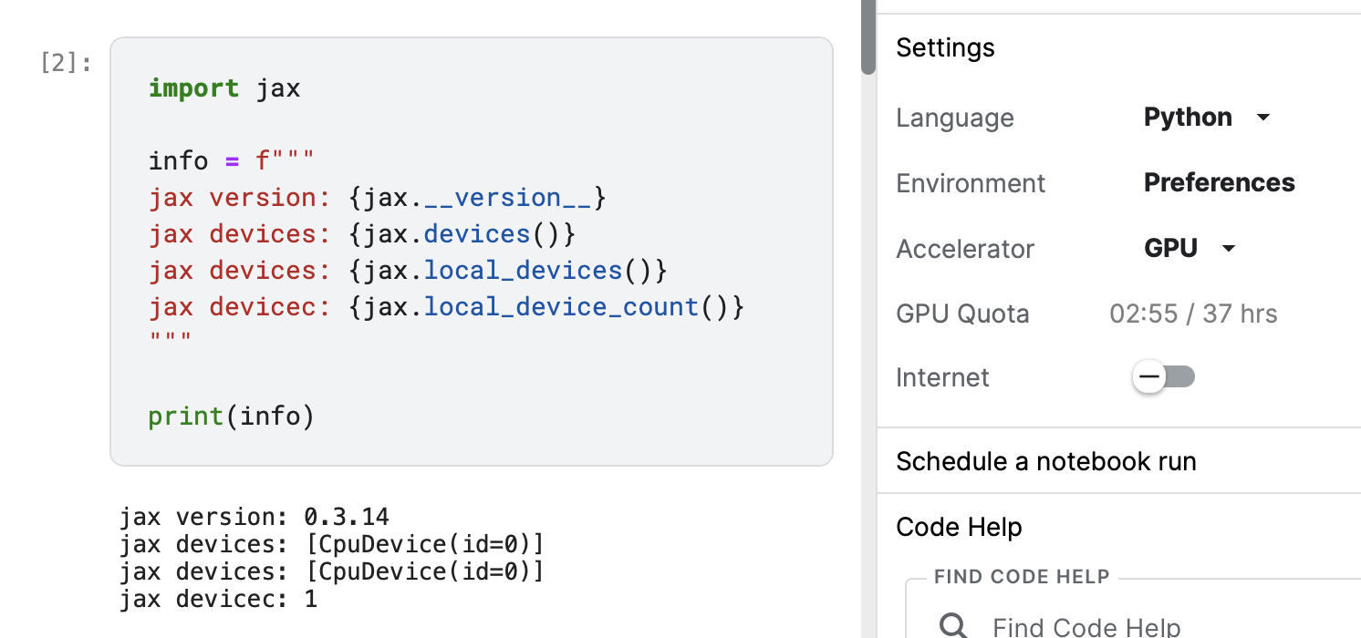 ## 🐛 Bug <!-- A clear and concise description of what the bug is. --> <img width="746" alt="image" src="https://user-images.githubusercontent.com/36644230/178949306-03fc6087-d4f7-47ca-bd9b-d20b465b4176.png"> <!-- FILL IN --> Expecting to see a GPU device on backend, but seeing CPU instead. This wasn't an issue on earlier environments. Also, thanks for making Flax a default package 🙌