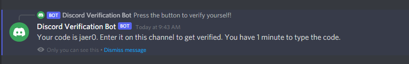 - Sends verification message (only works on the verification channel with MANAGE_GUILD privileges)
