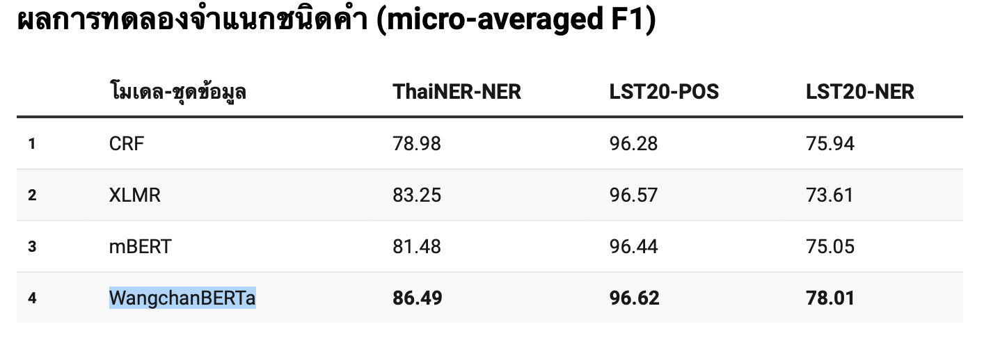 Before merging this PR, perhaps, it might be useful to compare the proposed and the equivalent existing ones in PyThaiNLP. According to โมเดลประมวลผลภาษาไทยที่ใหญ่และก้าวหน้าที่สุดในขณะนี้ (Medium, 2020), it seems IMHO, doing this comparison would allow us to