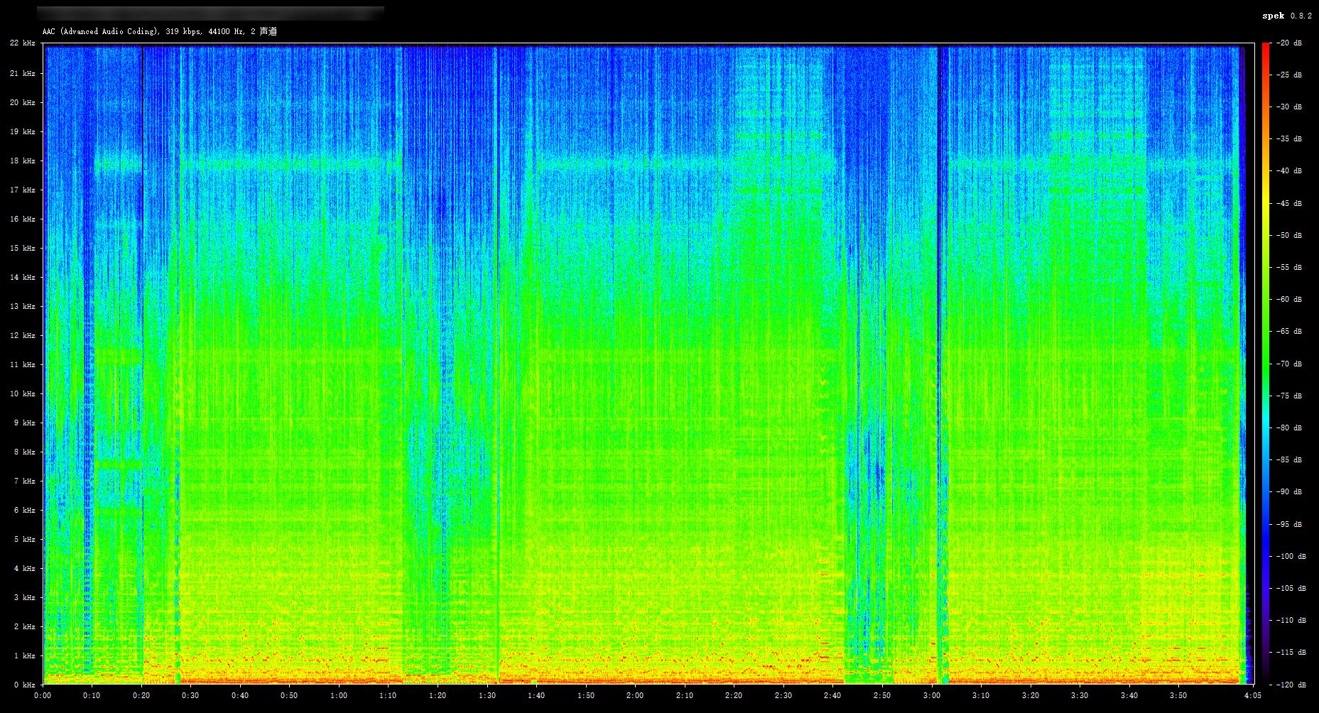 处理时应选用 Apple iTunes 购买的 AAC 格式音频,常见的频谱长这样:
