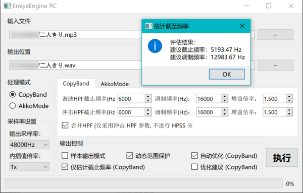 故再将冲击增益降低 0.5,同时给谐波增益改为 1.0 并再次执行。