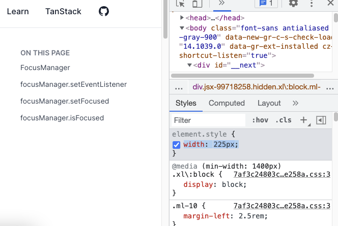 Solution - Changing width to 225 px helps prevent this horizontal scroll from Entire API reference Section.