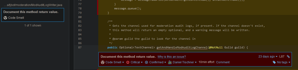 Our Sonar is currently failing due to a missing Javadoc for a return value of a public method: