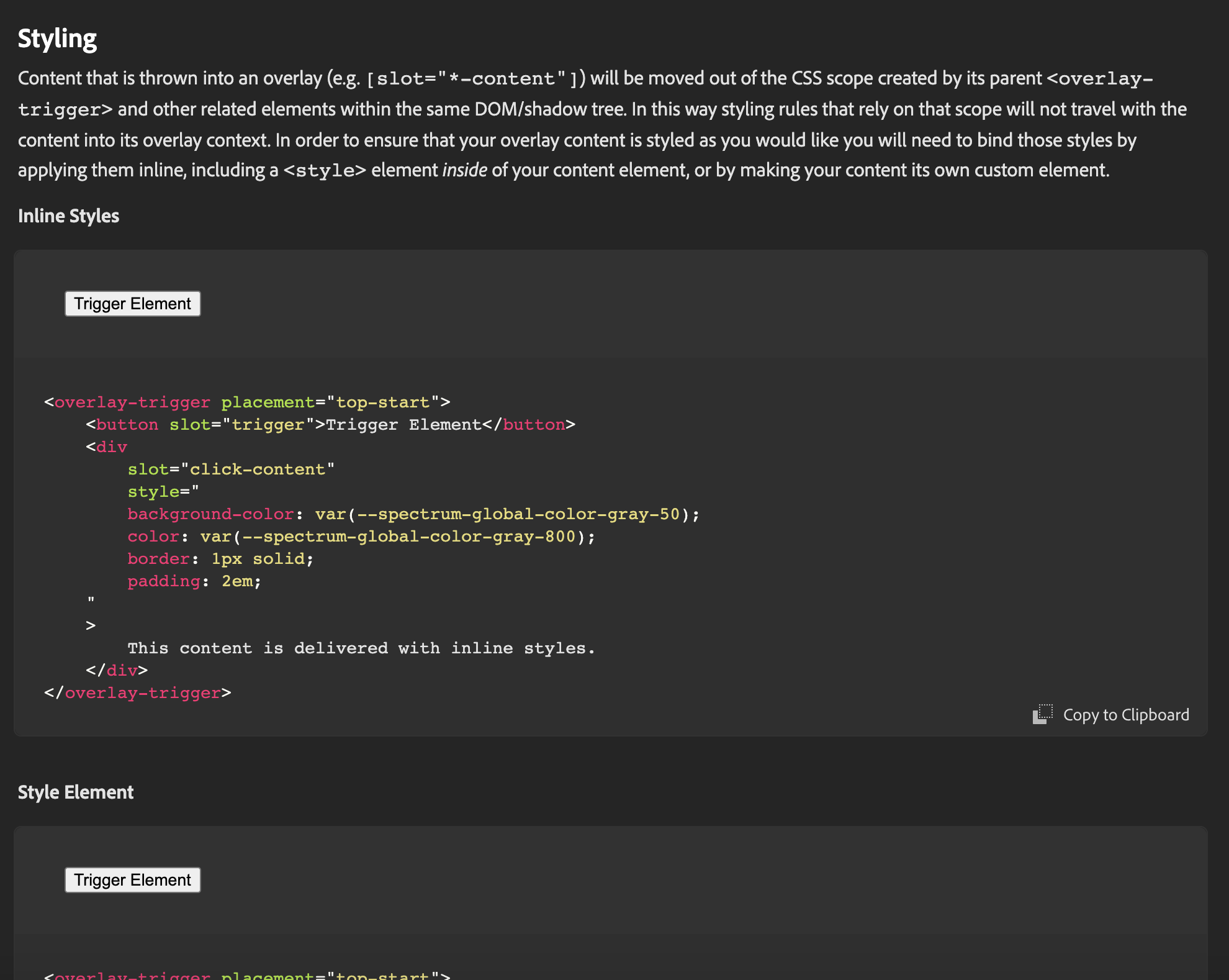 | <button slot="trigger">Trigger Element</button> |