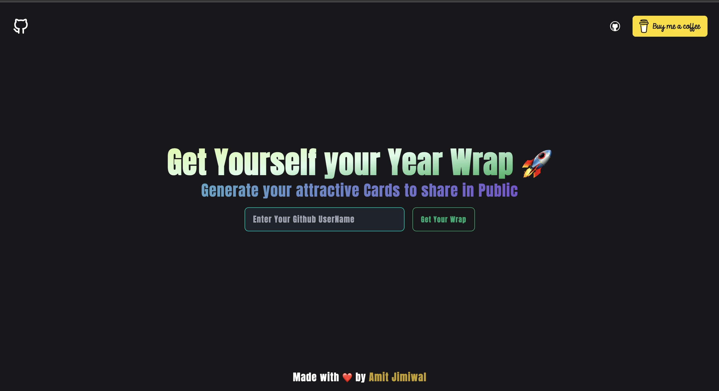 Thank you for taking an interest Github Wrapped ! If you encounter any issues, have suggestions, or want to report a bug, feel free to create an issue on the GitHub repository. Happy Coding!
