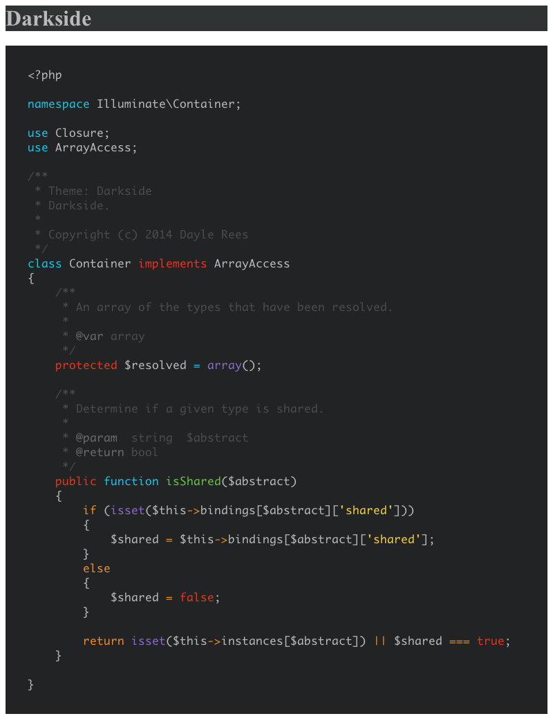 Hi there! My name's Dayle Rees and I'm one of the Laravel PHP framework core developers. Part of the Laravel mentality is that coding should be enjoyable for the coder, not just the client receiving your hard work. For this reaon I'd like to share with you a number of themes for some popular text editors that will hopefully be pleasing to your eyes, and allow you to enjoy the time you spend in front of the screen.
