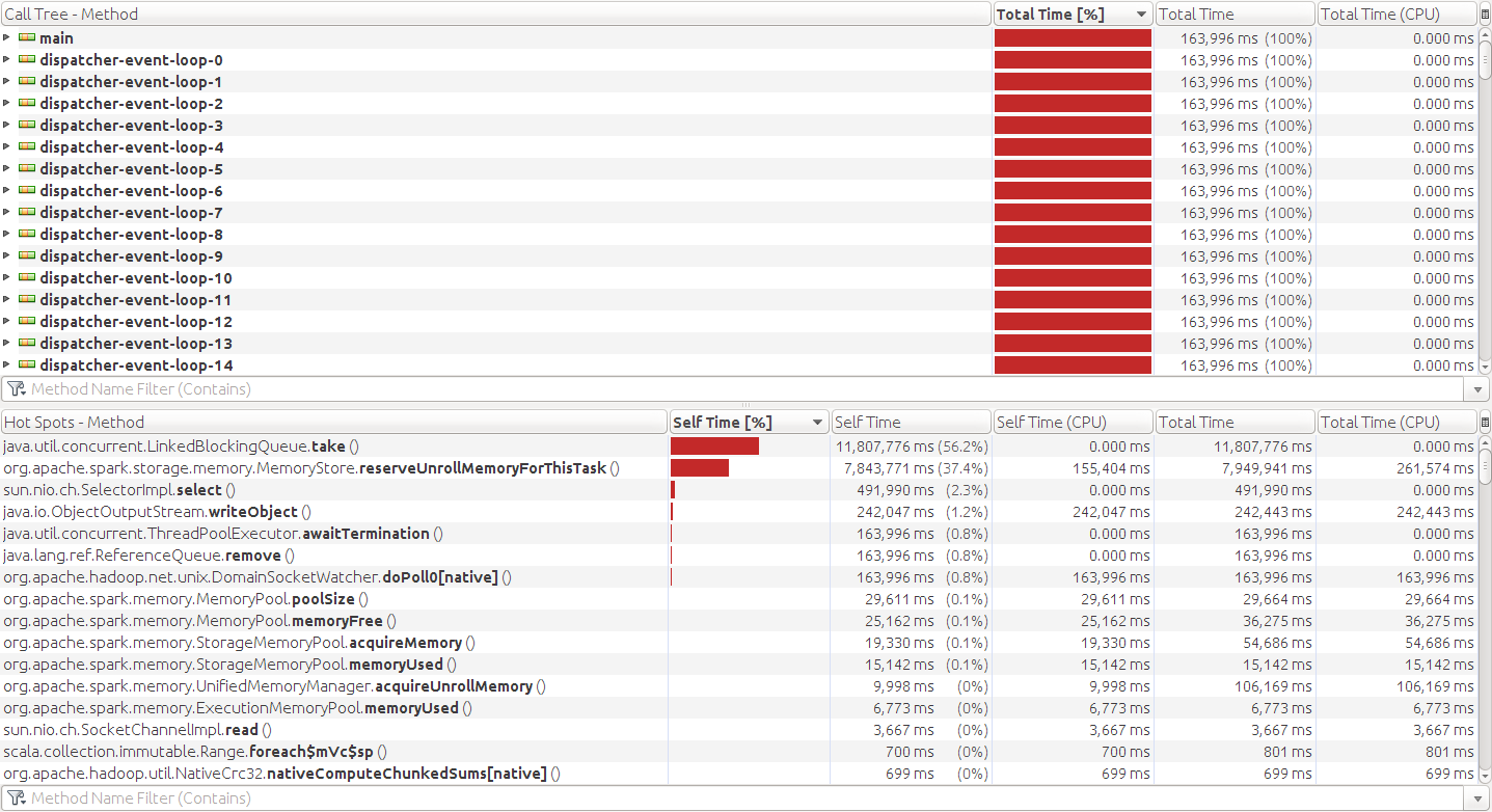 @jiangxb1987 Ok, I can test it later. The following picture is when I run kmeans and put the source data into the offheap memory, and you can see the CPU time occupied by |