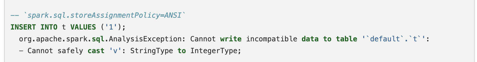 org.apache.spark.sql.AnalysisException: Cannot write incompatible data to table '`default`.`t`':