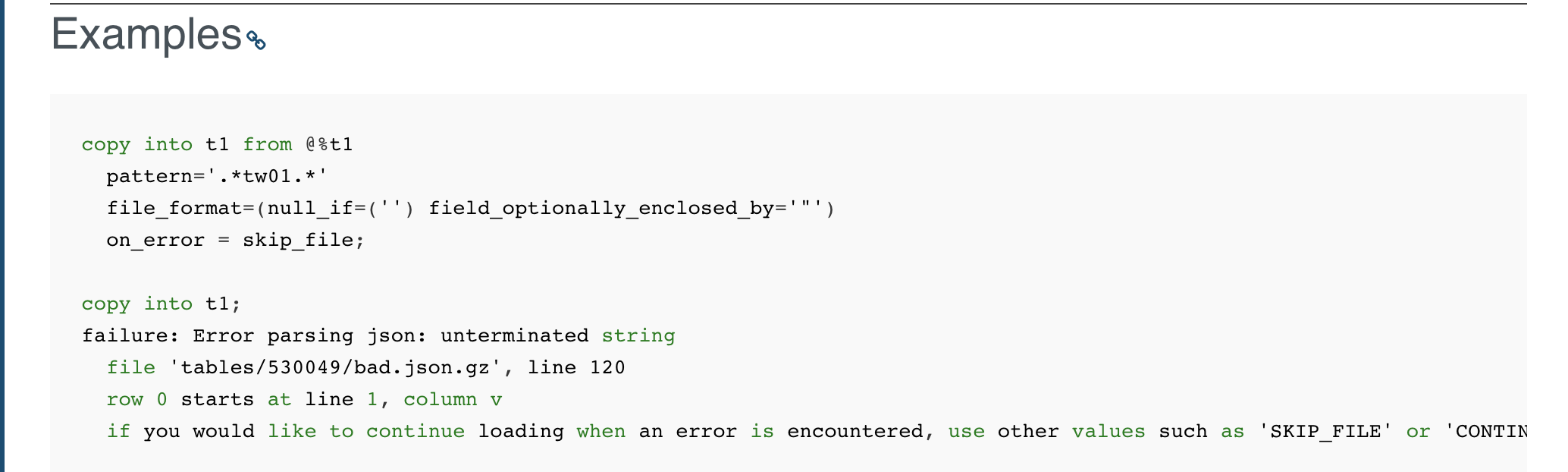 I googled, but didn't have much luck. Only found this one at https://docs.snowflake.com/en/sql-reference/functions/validate.html