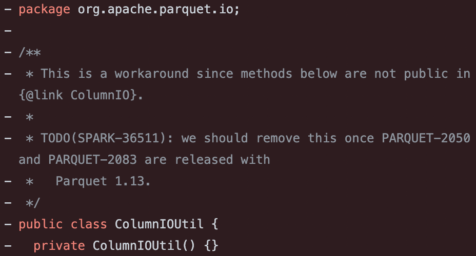 | * TODO(SPARK-36511): we should remove this once PARQUET-2050 and PARQUET-2083 are released with |