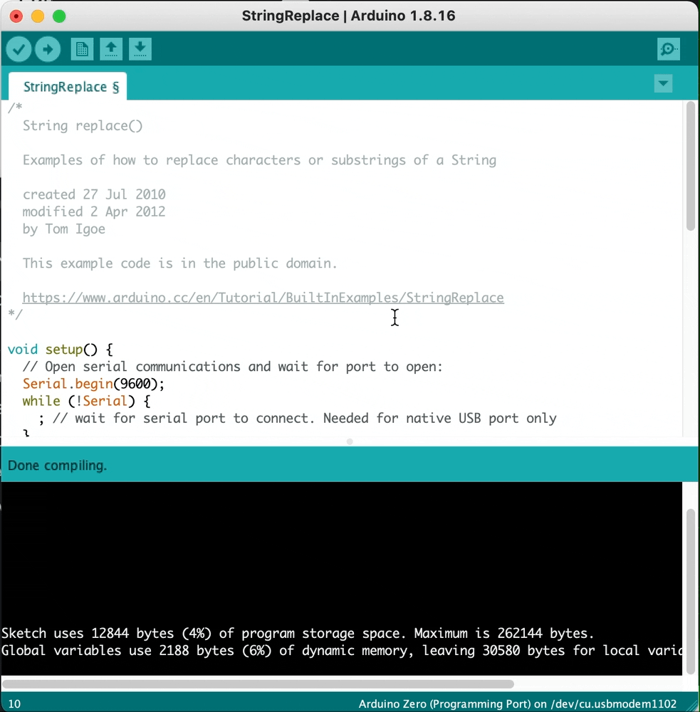 - Click Verify (or Upload) button on top bar of IDE GUI