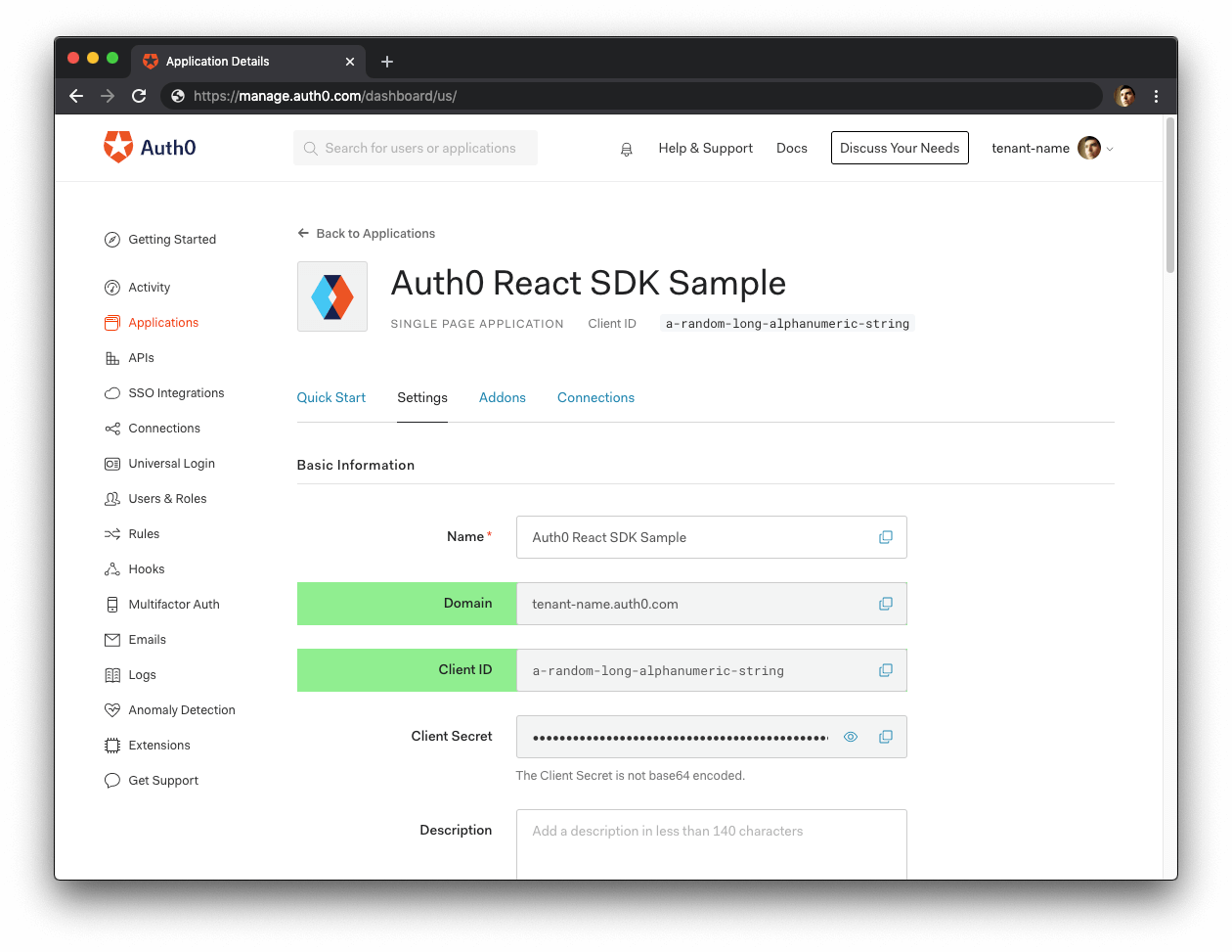 Name: Auth0 React Sample