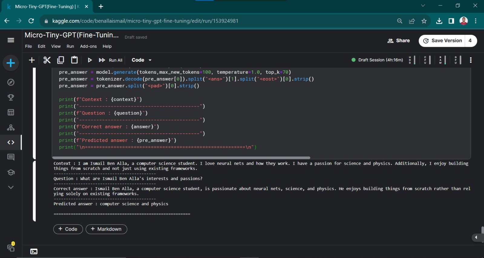 This is our micro-tiny GPT model (π we are still learning), built from scratch and inspired by the innovative approaches of Hugging Face Transformers and OpenAI architectures. Developed during our internship at 3D Smart Factory, this model showcases our committed efforts to create an advanced AI solution.