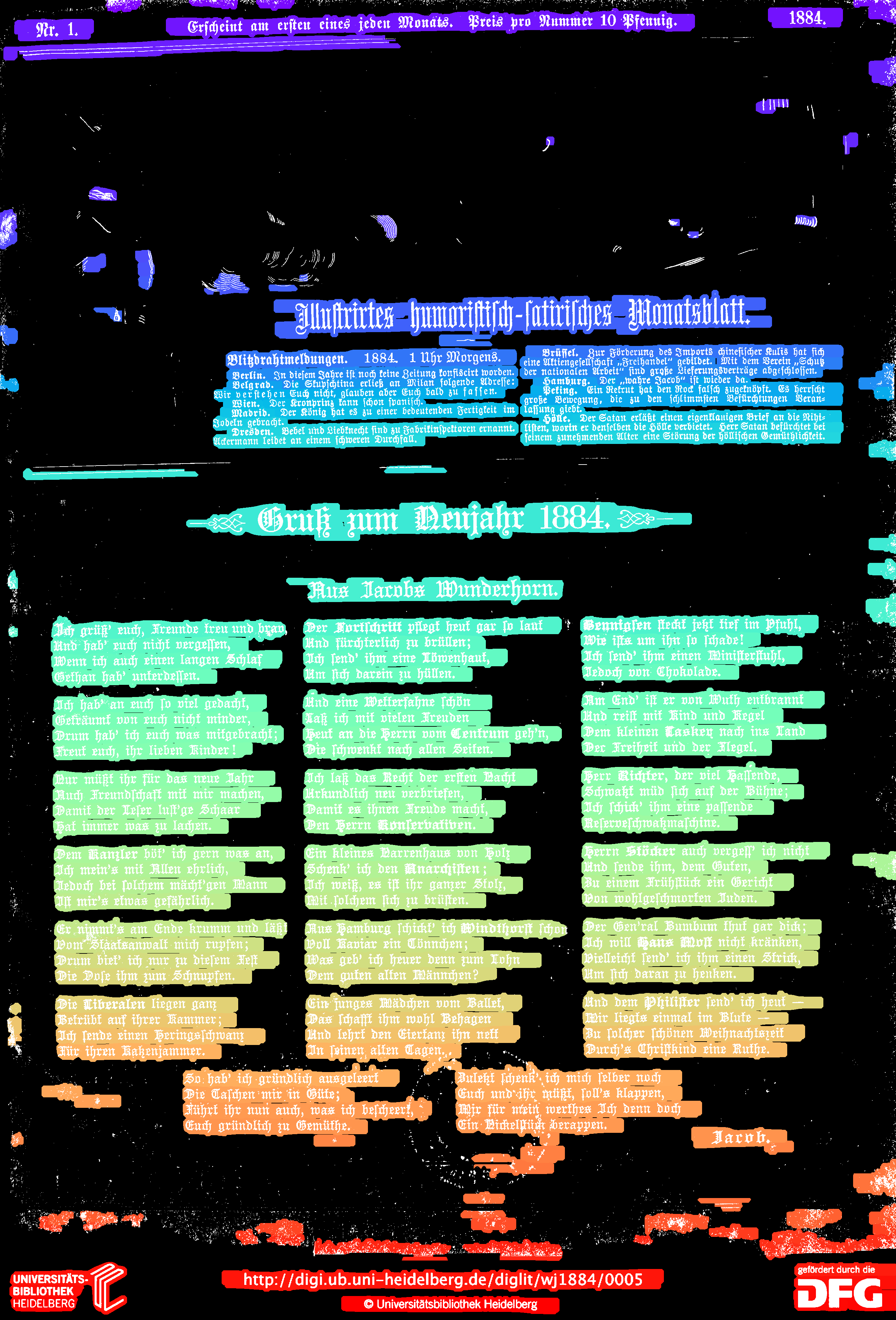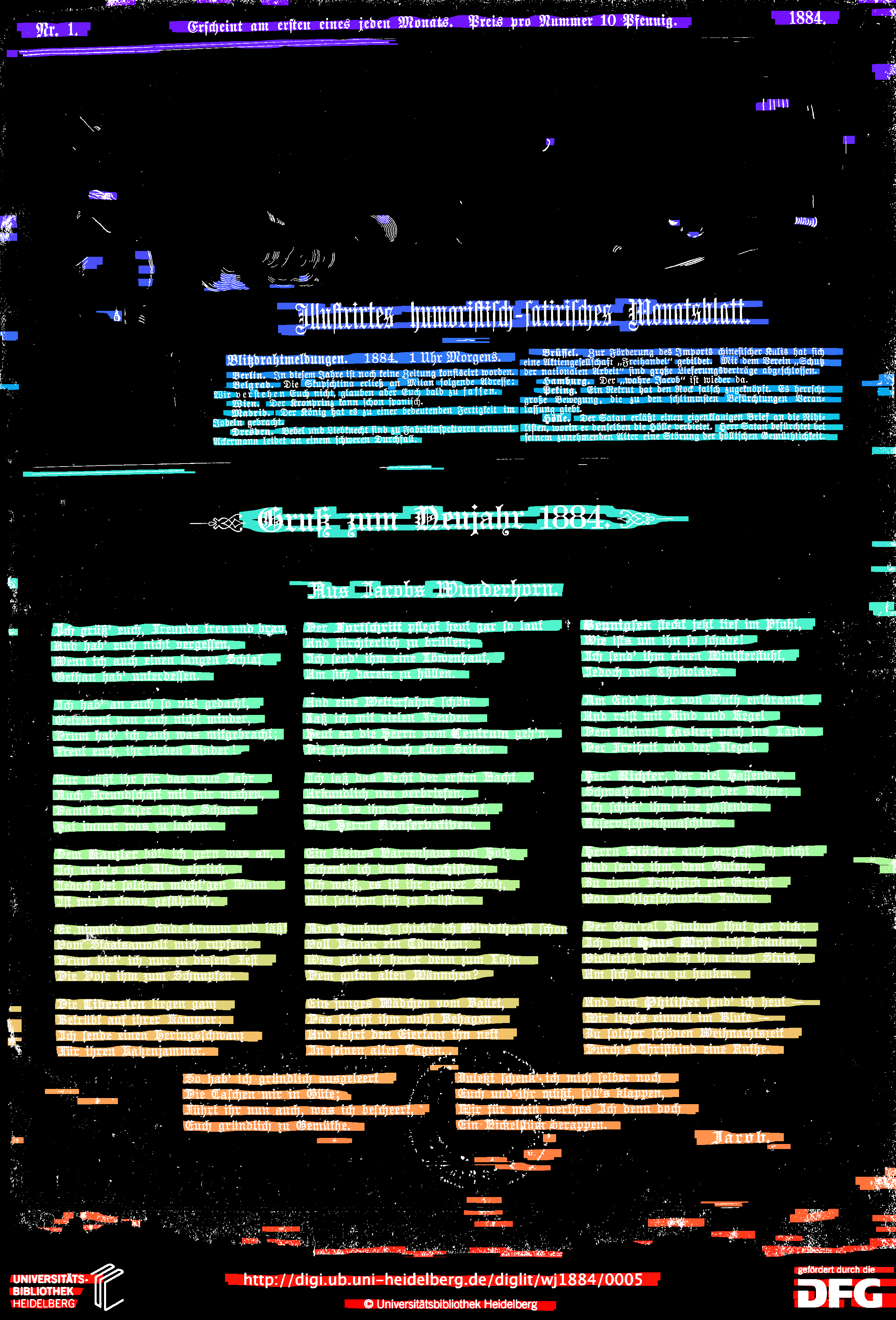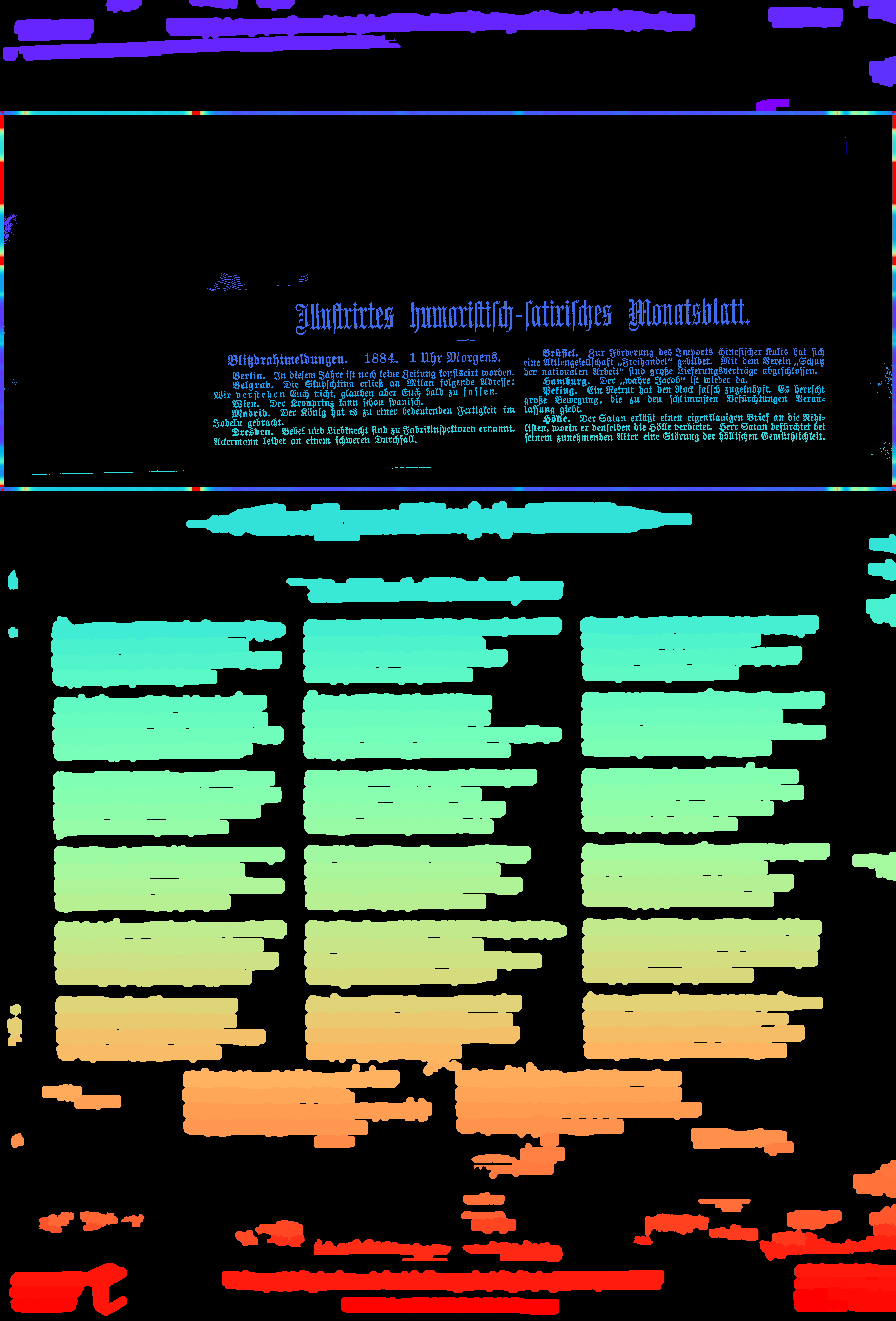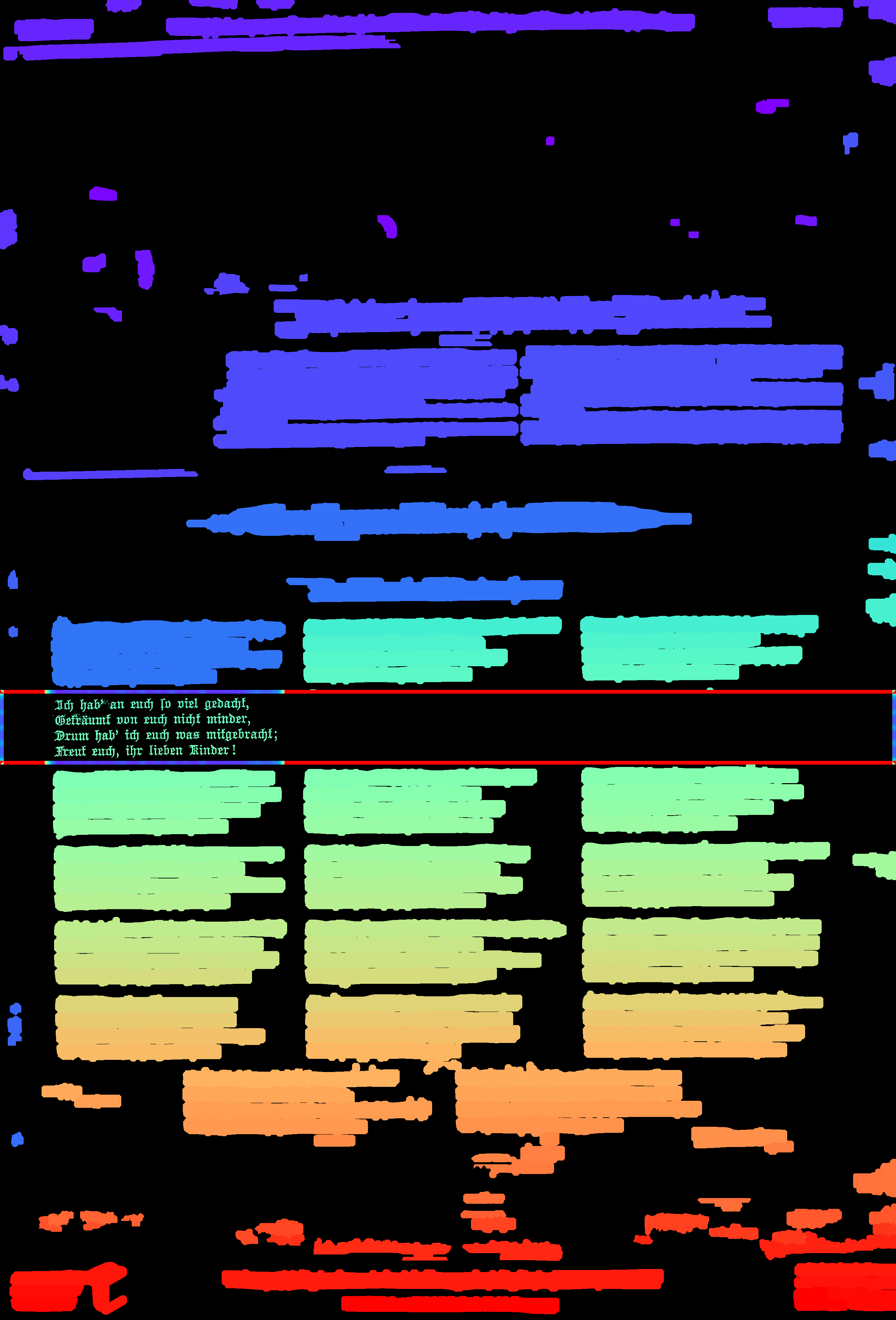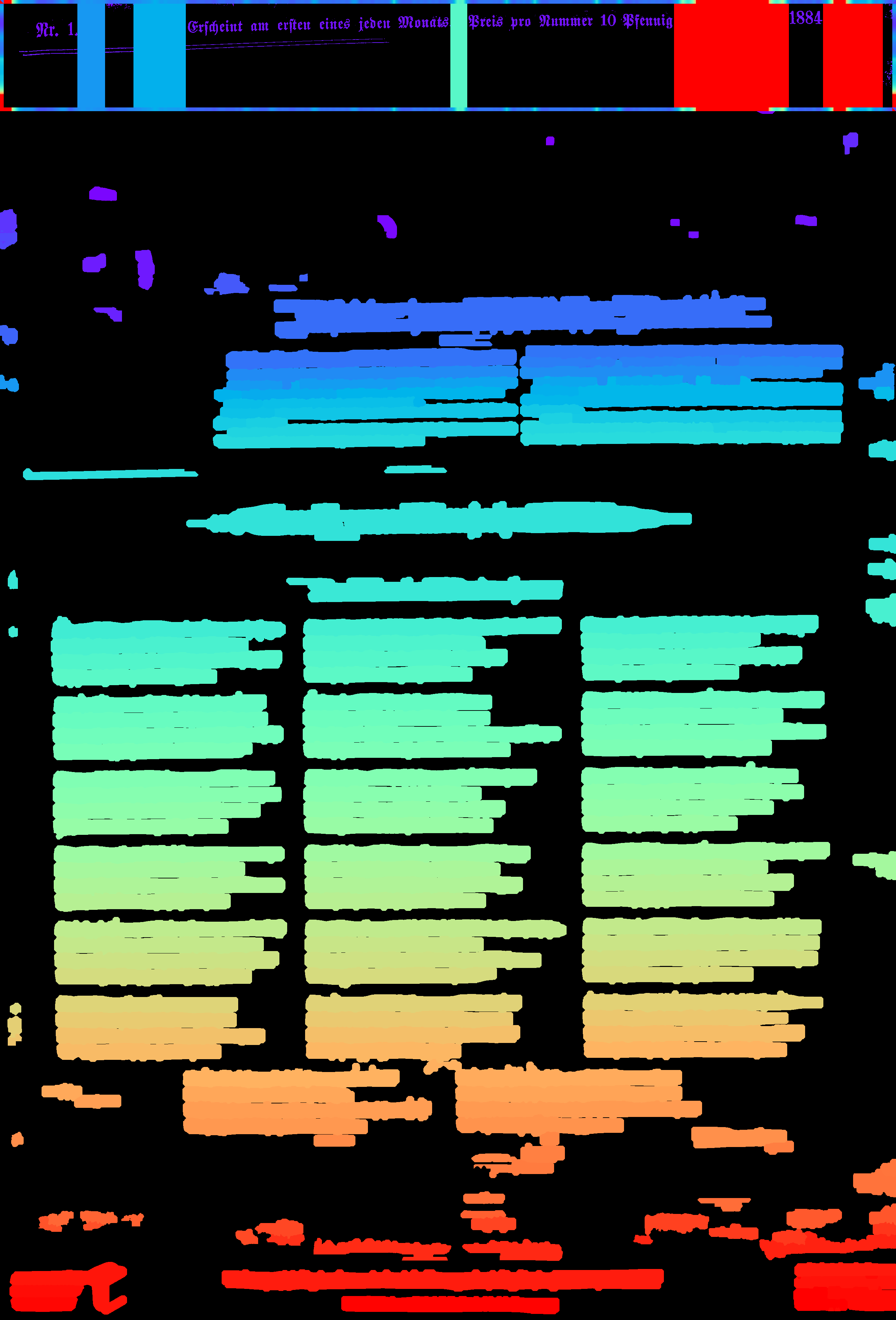 - compute_images: new function to detect and suppress large foreground objects early on that are not h/v-lines (and _not_ search for h/v-lines or assign text lines within them); this could be true graphics/photos/figures, but also drop-capitals - compute_hlines / compute_separators_morph: reconstruct after opening by length not by keeping any overlapping component, but only up to a certain distance (to avoid overlapping glyphs but still get most of the line's parts); ignore parts that already belong to image components identified by compute_images (so they don't compete in n-best race) - compute_colseps_conv: - don't blur away small/protruding glyphs below fg/bg threshold - don't use cleaned but raw boxmap (again) to avoid marking small fg as bg - compute_segmentation: filter out line labels that only have noise fg (i.e. components that have been filtered as too small/large) - ensure odd kernel sizes everywhere - DSAVE (visualization for debugging): use uniformly bright and maximally differentiating colormap, and set off 0 (background) to black; allow passing a second array with foreground as white