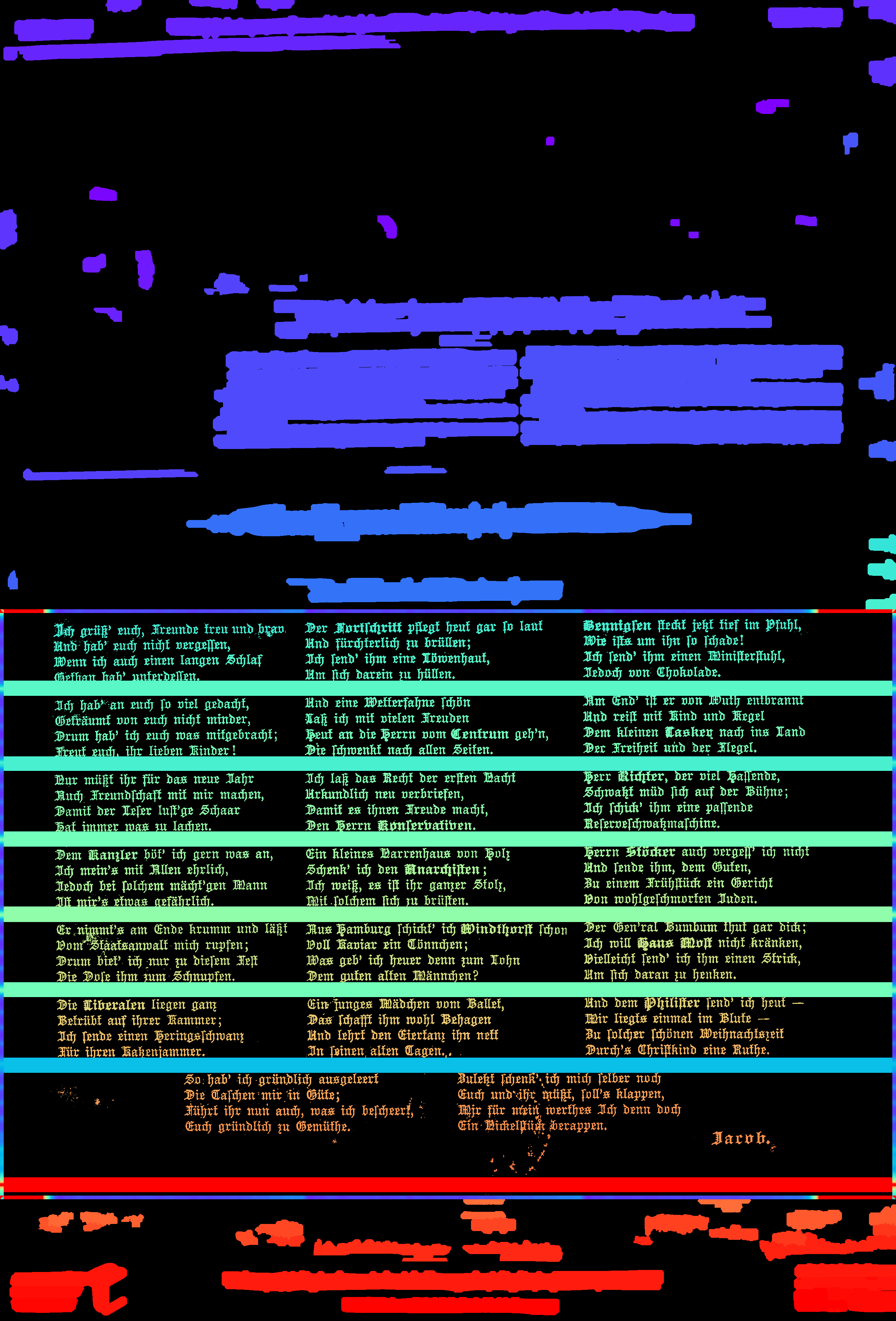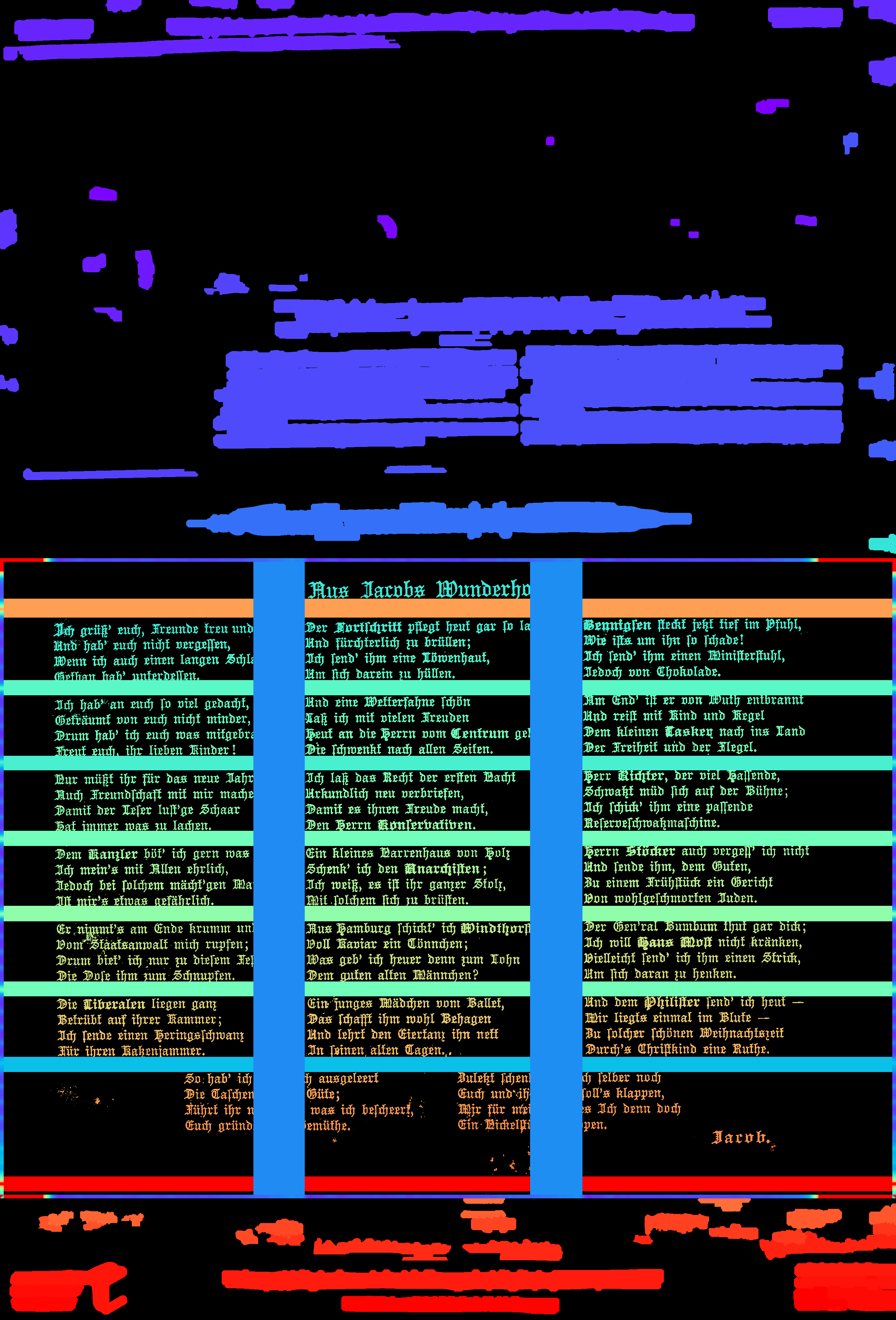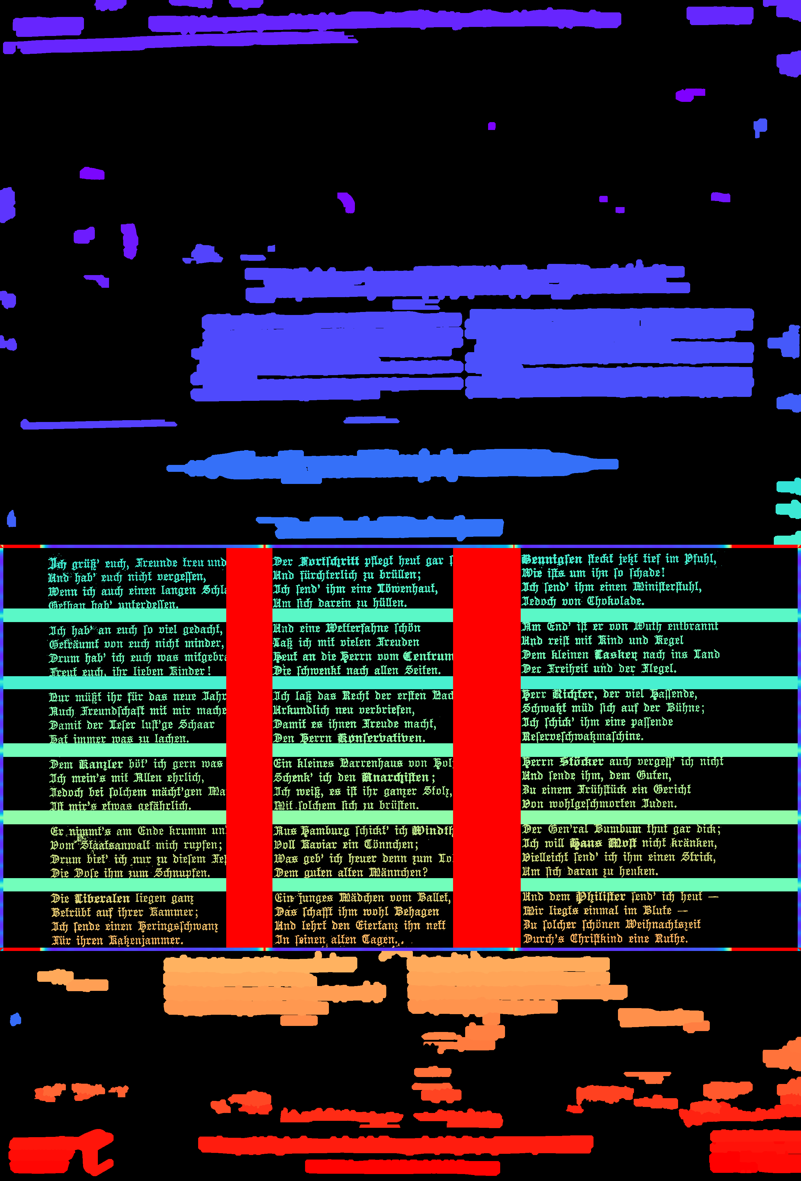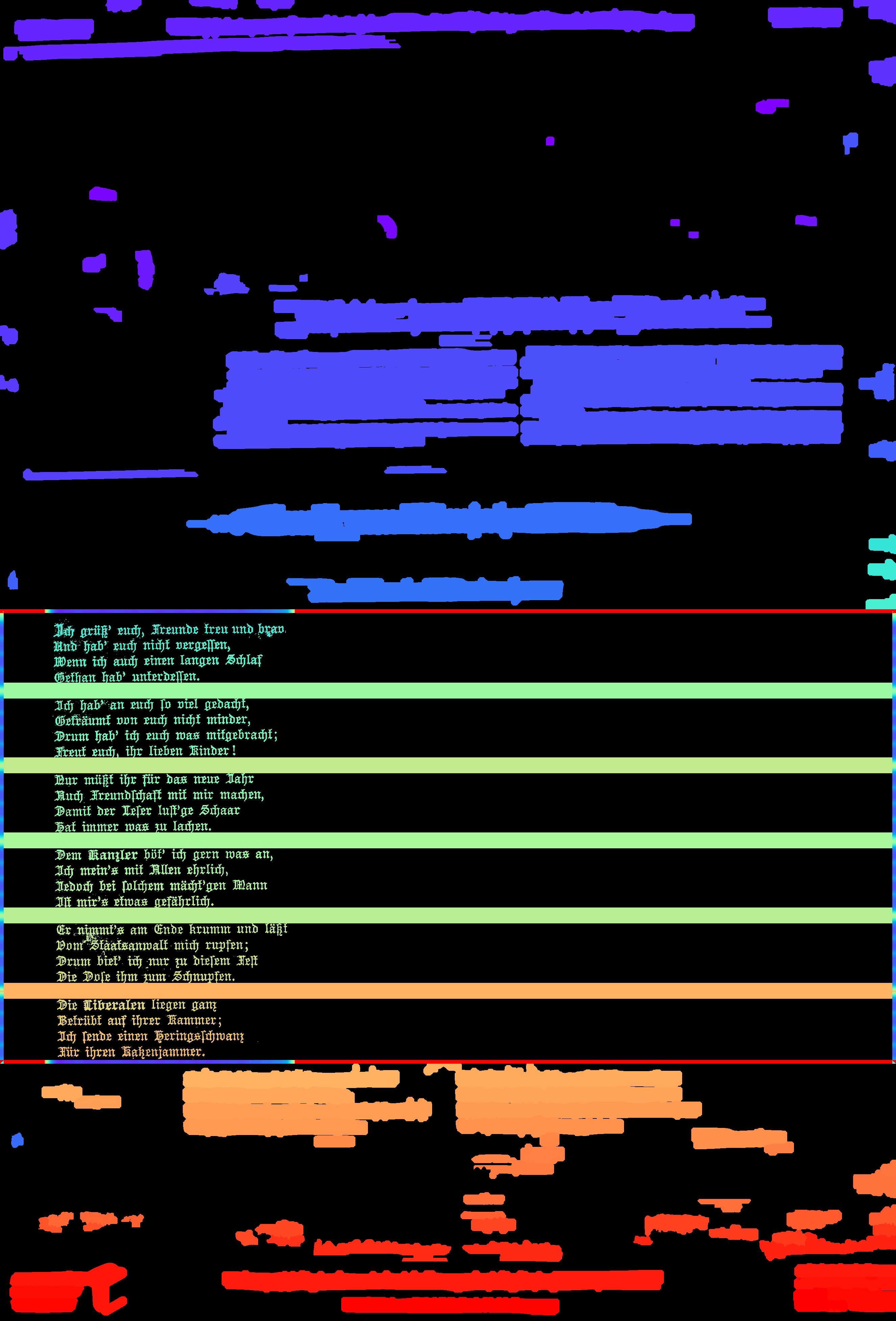 One word about performance: I should also mention that there are quite a few parameters to control page segmentation. I have no idea how general my defaults are though. If you get strange results, look at the number and length of lines to be detected, number of images to be detected, and especially Or activate the ocrd_cis/ocrd_cis/ocropy/common.py Lines 389 to 390 in f242984