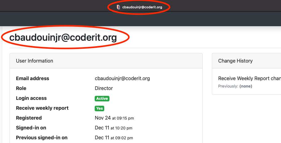 On the show page for the User object, you should be able to see the attendee's name. Additionally the title of the page should be replaced with the attendee's full name. See screenshot below for example. The attendee's name should also be listed under User Information as "First name: Chris\n Last name: Baudouin: