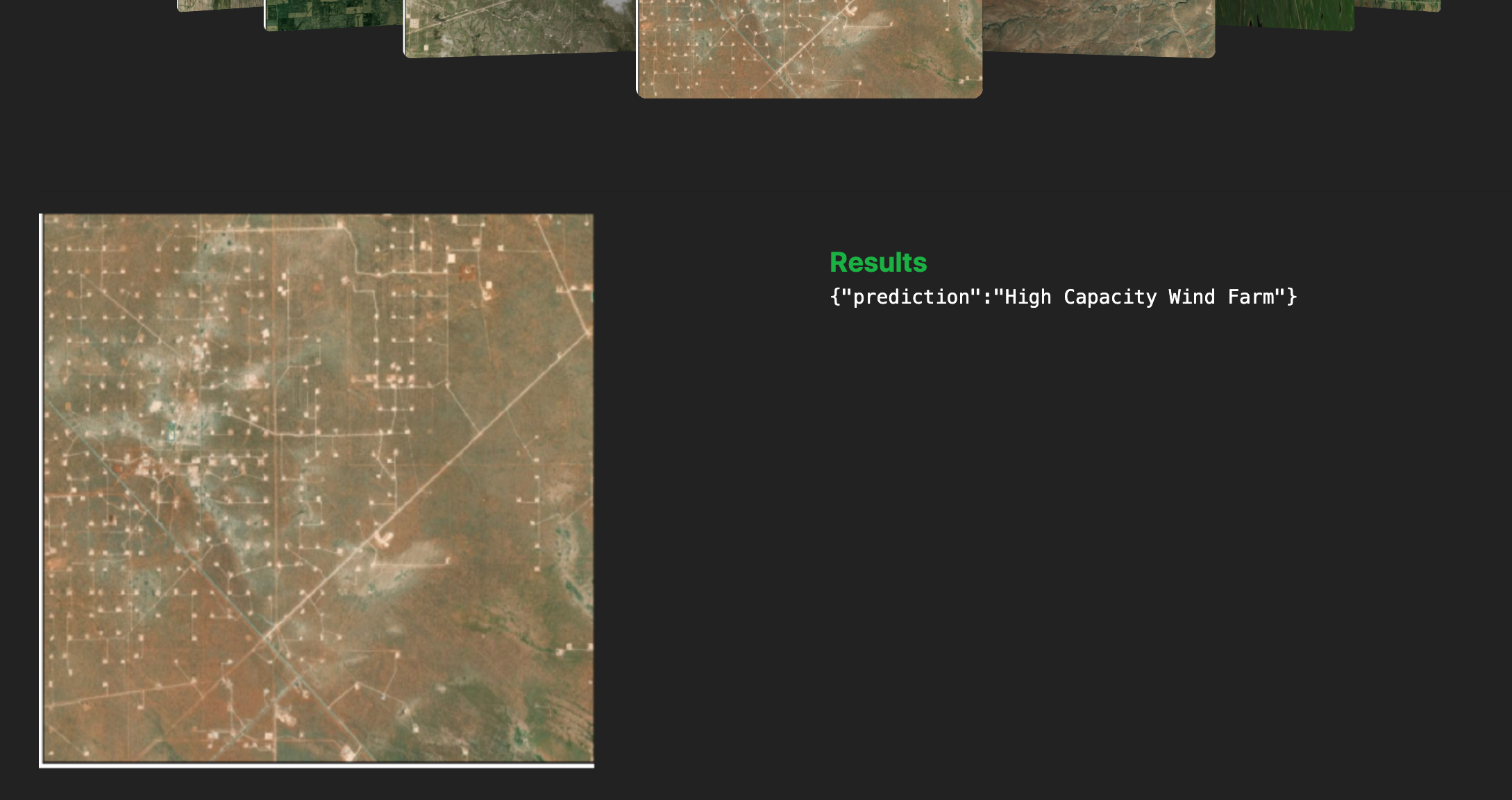 Wind Farm Spotter is an inference engine for classifying the capacity of existing land-based U.S. Wind Farms and the potential capacity of unoccupied locations for new Wind Farm projects based on aerial satellite images.