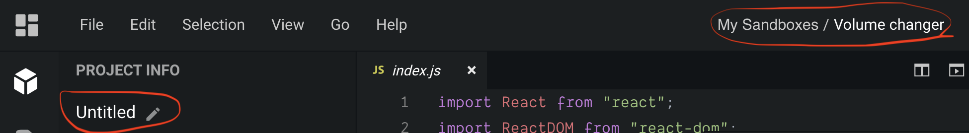 I changed the name of the Sandbox on the left sidebar, but the name on top of the Editor didn't change at the same time. Refreshing fixes this.