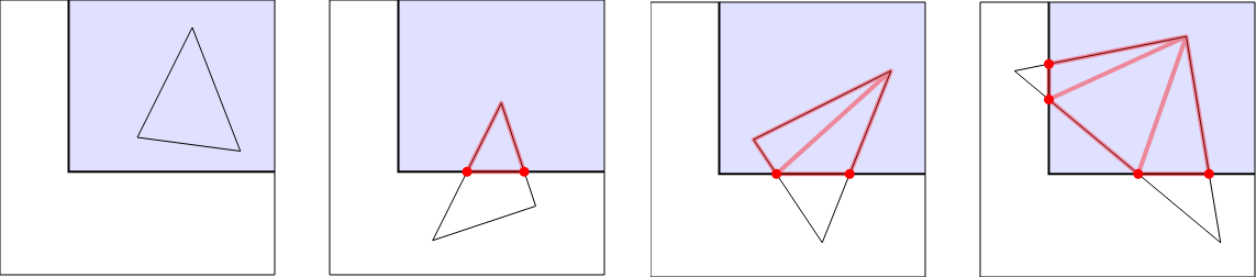 - Since we only want to render parts of the triangles which happen to be in the camera's view frustum (defined by the near plane, far plane and its field of view) we need to clip them against the six planes defined by the frustum. New vertices are produced in the process and in some cases more than one triangle.