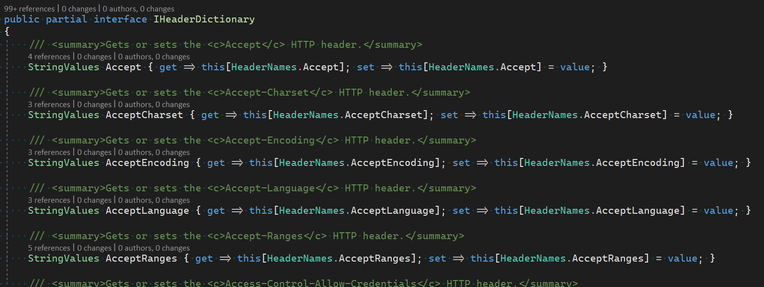 Yes; I had a source generator for the IHeaderDictionary (how I originally generated them); but the CI rejected it as a used project that wasn't in the shipped API, which seemed to be going wrong since it was just internal and not to be shipped.