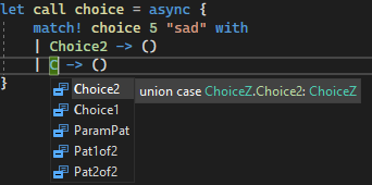 Choice1, which is of typeChoice, so completions should be filtered in the same fashion again. But that's for another time ;).