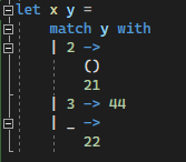 ... but only when the match clause expression is on a different line than the pattern.