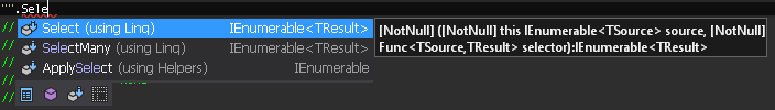 @vasily-kirichenko thanks for that feature! is there a special handling for the extension methods already or can we consider adding it? Here is what Resharper does in C# code, here it shows extension methods that are not in scope. I tried the same in recently updated VS2017 and it doesn't have that, but maybe I need to install a nighlty? |