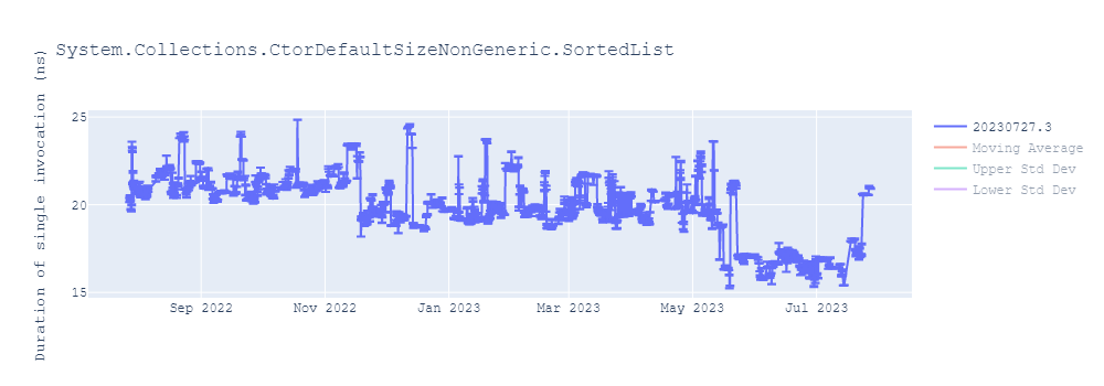 IsRegressionStdDev: Marked as regression because -6.203605919043107 (T) = (0 -17.42774689480443) / Math.Sqrt((1.955548184237554 / (22)) + (0.007607491354146127 / (18))) is less than -2.0243941639098457 = MathNet.Numerics.Distributions.StudentT.InvCDF(0, 1, (22) + (18) - 2, .025) and -0.1190426359229584 = (15.573800617909843 - 17.42774689480443) / 15.573800617909843 is less than -0.05.