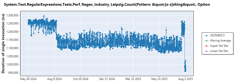 System.Text.RegularExpressions.Tests.Perf_Regex_Industry_Leipzig.Count(Pattern: "[a-z]shing", Options: Compiled)