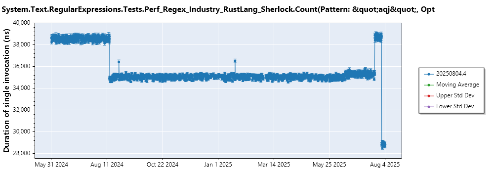 python3 .\performance\scripts\benchmarks_ci.py -f net8.0 --filter 'System.Text.RegularExpressions.Tests.Perf_Regex_Industry_RustLang_Sherlock*'System.Text.RegularExpressions.Tests.Perf_Regex_Industry_RustLang_Sherlock.Count(Pattern: "aqj", Options: Compiled)