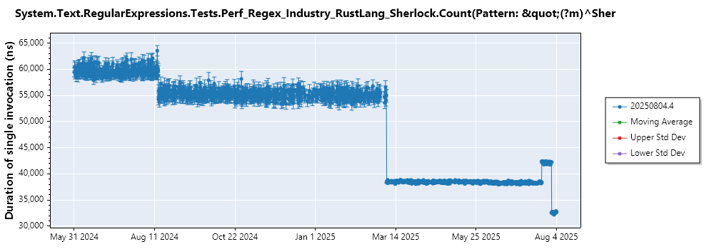 System.Text.RegularExpressions.Tests.Perf_Regex_Industry_RustLang_Sherlock.Count(Pattern: "(?m)^Sherlock Holmes|Sherlock Holmes$", Options: Compiled)