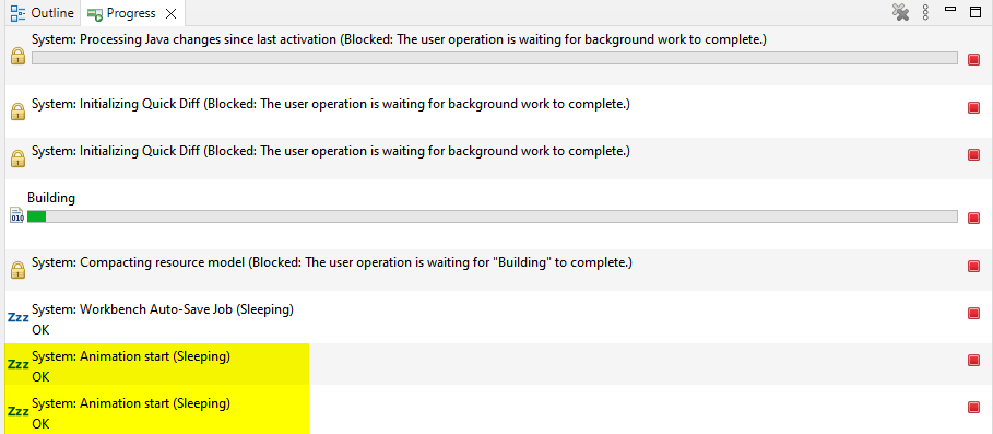 It's the identically job that was scheduled again. The old jobInfo is still shown when the new Jobinfo is added.  Mostly annoying because it that it makes the heights of the progress view flickering.