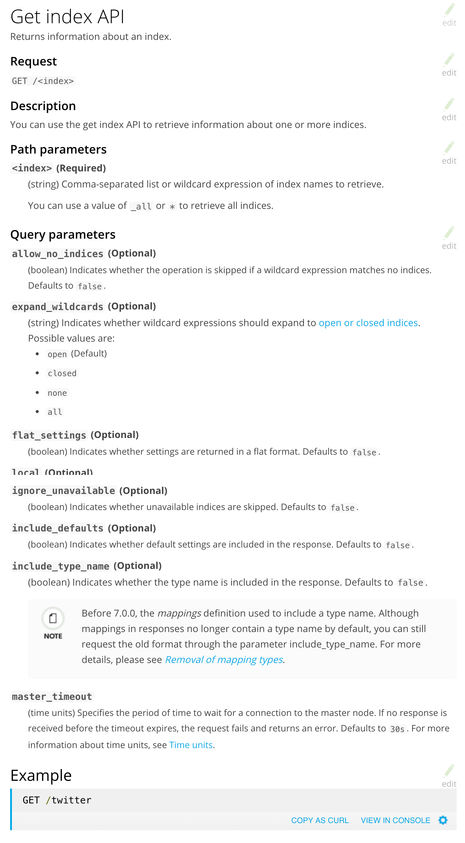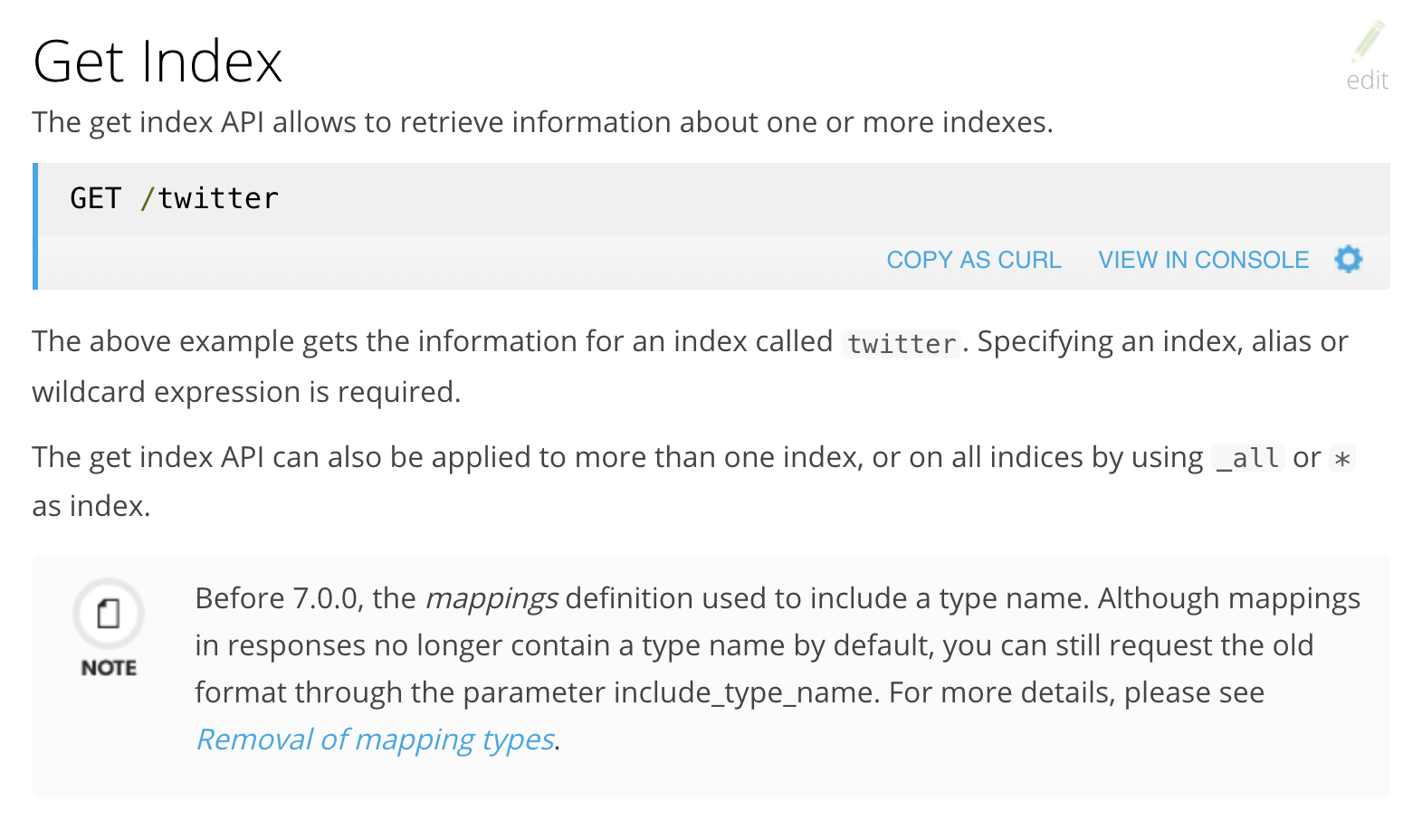 This PR rewrites the get index API to using that template.