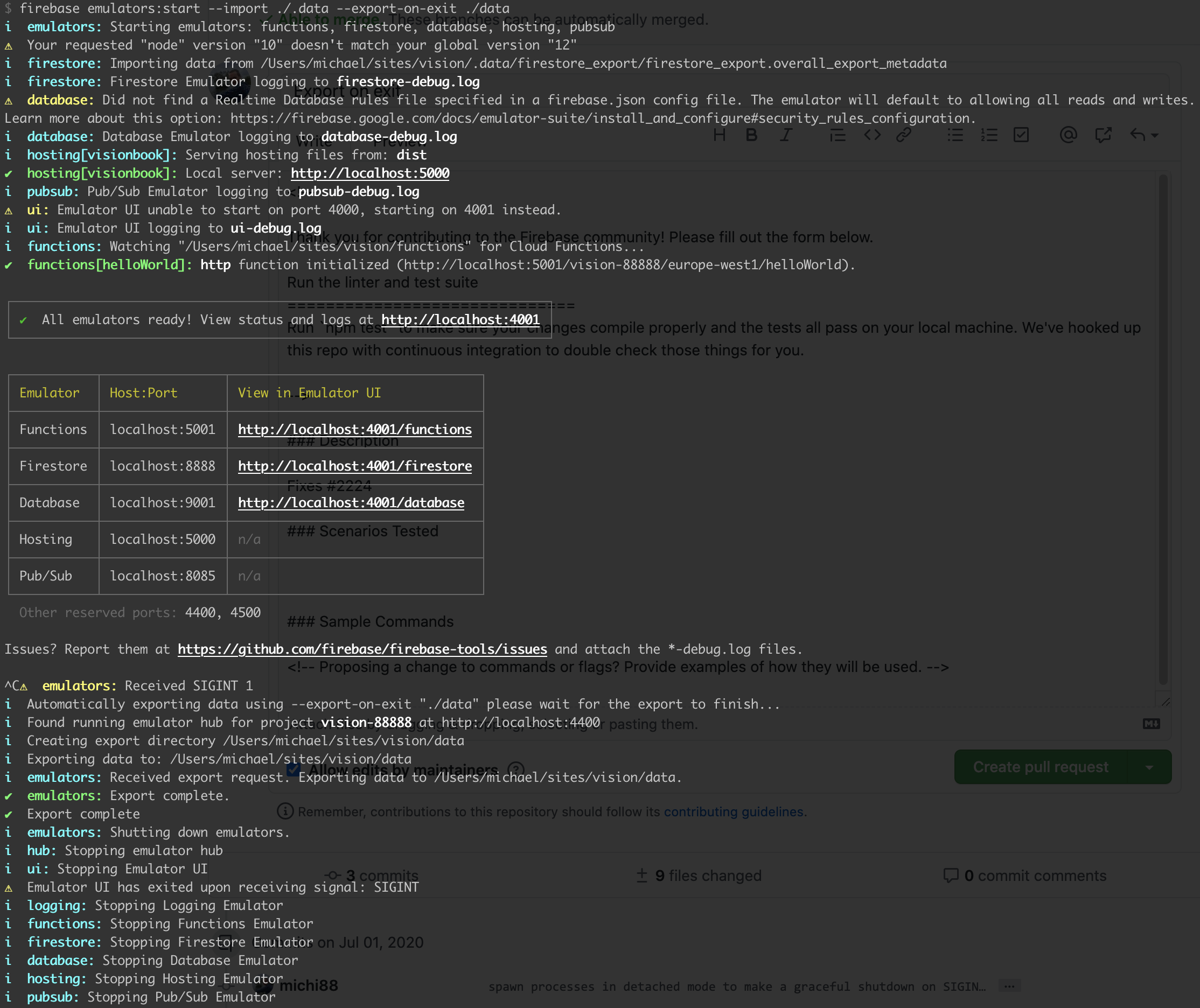 Firestore Emulator has exited upon receiving signal: SIGINTwhich make it seem like something went wrong but I think that's normal? - The log message