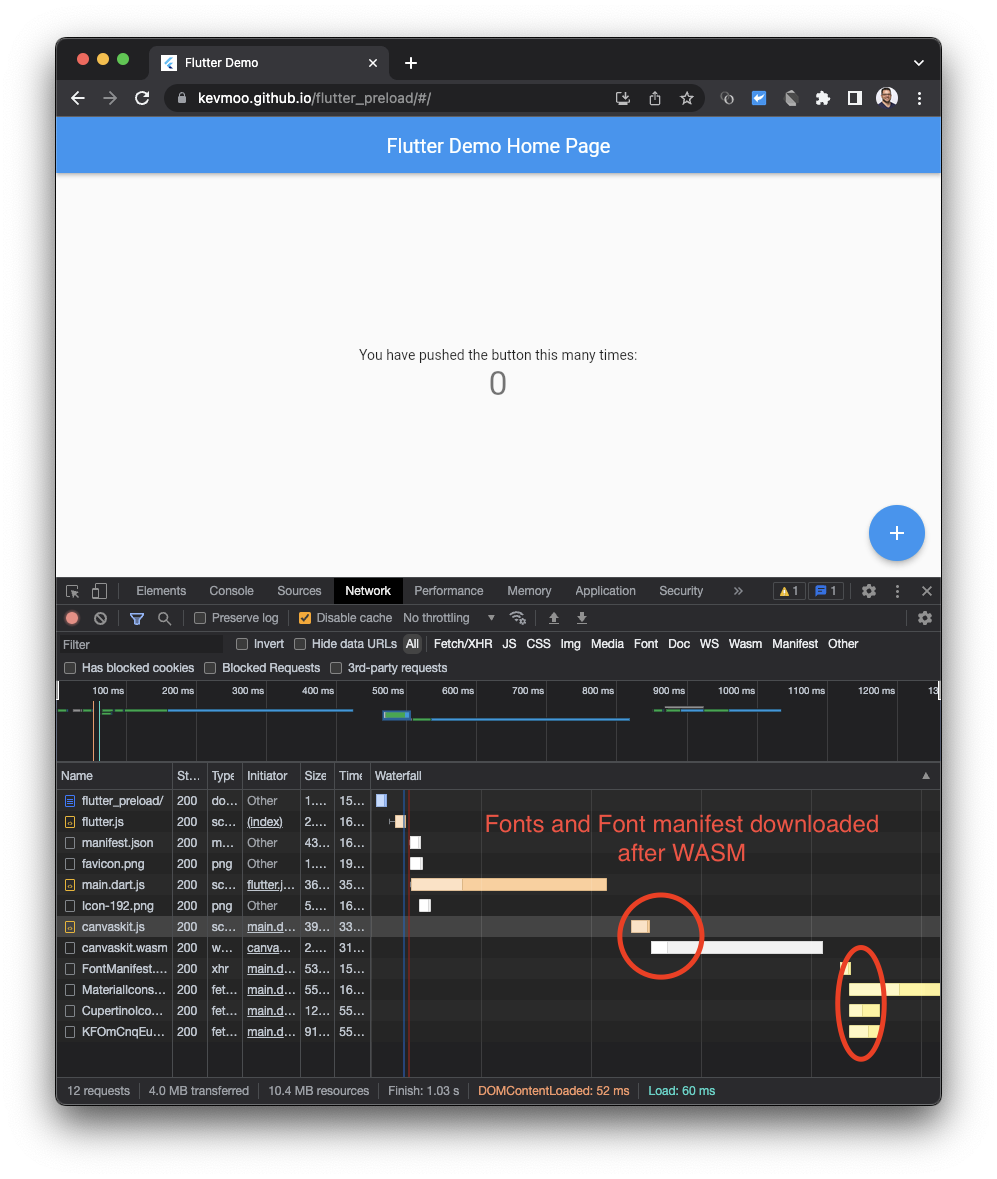 registerFonts()into the two aforementioned steps allows the following functions to be called concurrently:downloadAsetFonts(AssetManager assetmanager)canvaskit = await downloadCanvasKit()All affected tests were refactored as well.
