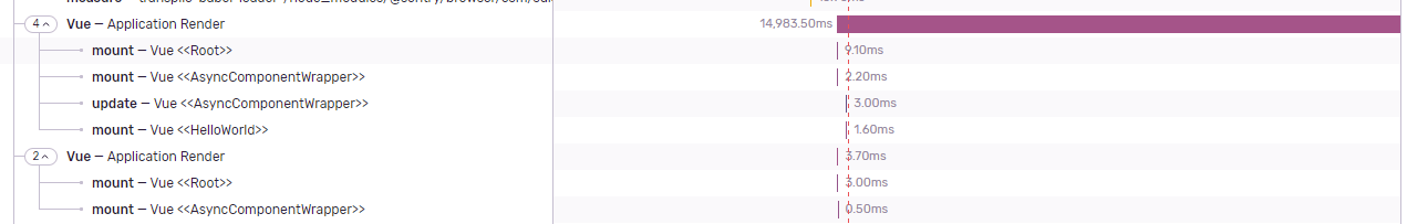 When I have multiple Vue apps on the same page that share the same components the spans from the other app never finish. Log: