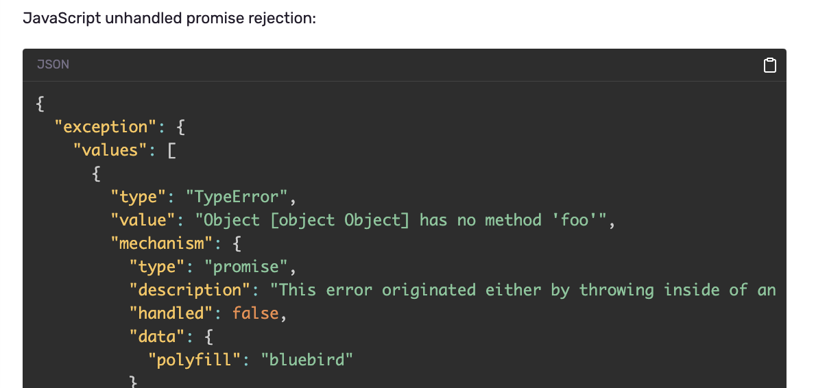 onuncaughtexceptionoronunhandledrejection.Also, add the appropriate exception type to mechanism whether it is