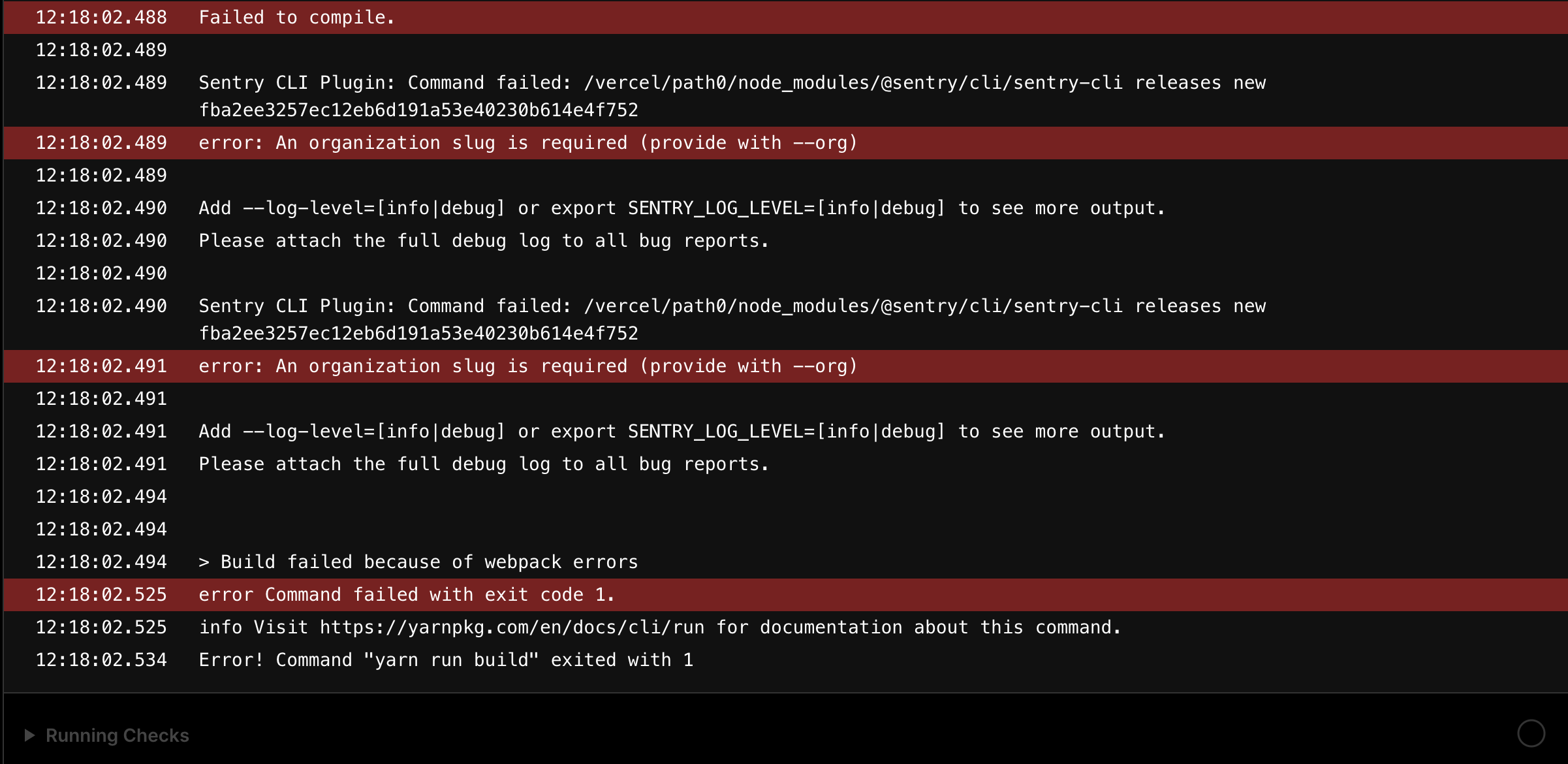 This is not great because Vercel automatically integrates with Github and once users next.js app (hosted on Vercel) adds Sentry, we break their deployments, like this: