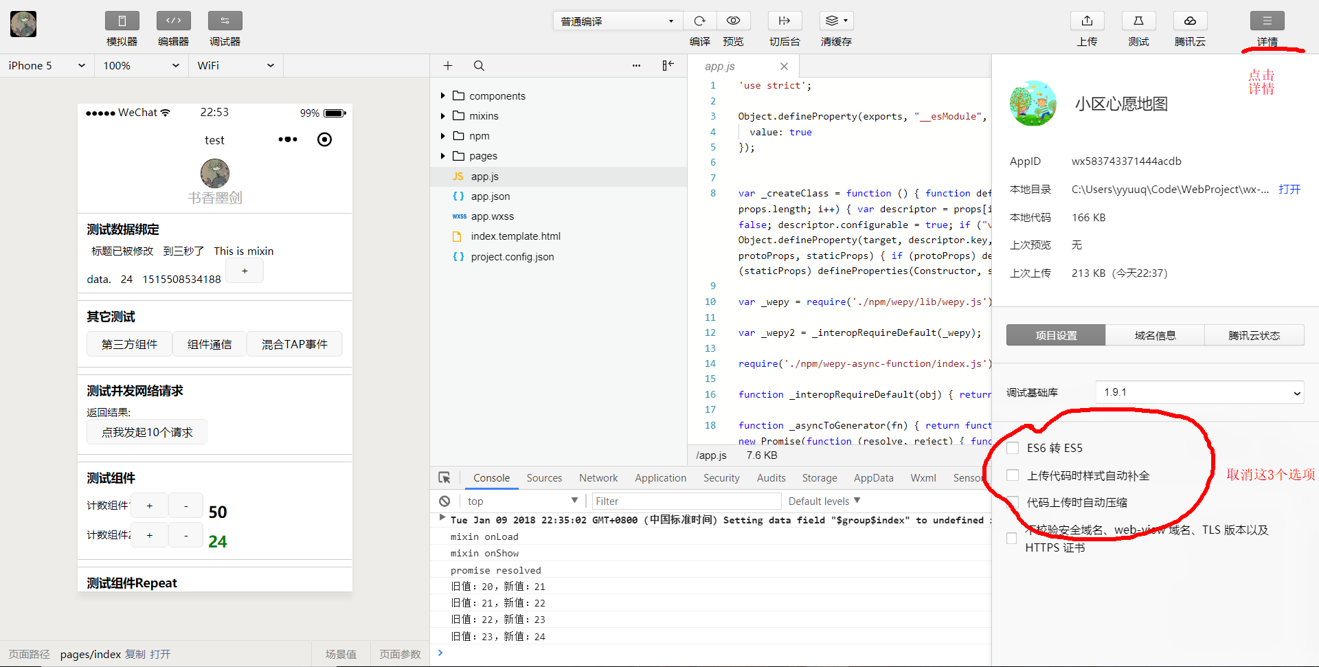 -->项目-->关闭代码压缩上传 重要:开启后,会导致真机computed, props.sync 等等属性失效。#270 -