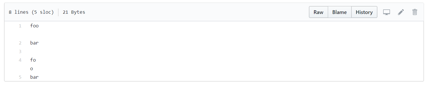 You can see that although there are only 5 numbered lines, the file actually takes up 7 lines (with two extra line breaks).