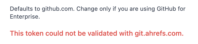 However, PAT doesn't seem to be working either? I add our hostname (that is, indeed, the domain we access GHE through, correct? It's not some mutation of that, or a subdomain?); I generated a new token thru the GHE settings, and yet I'm still getting: