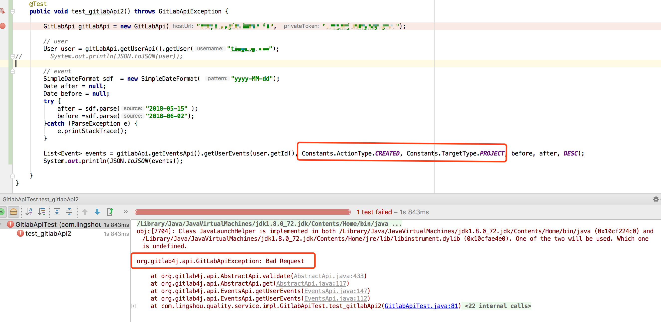 when i use getUserEvents method with ActionType or TargetType parameter got error  #190