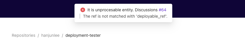 deployable_reffield to the configuration to validate the ref which is deployable or not. If it is not matched, it returns an unprocessable entity error.
