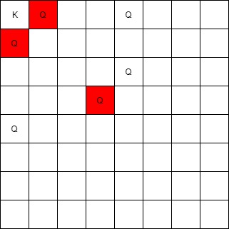 The queen at [3,3] can attack the king cause they're in the same diagnal.